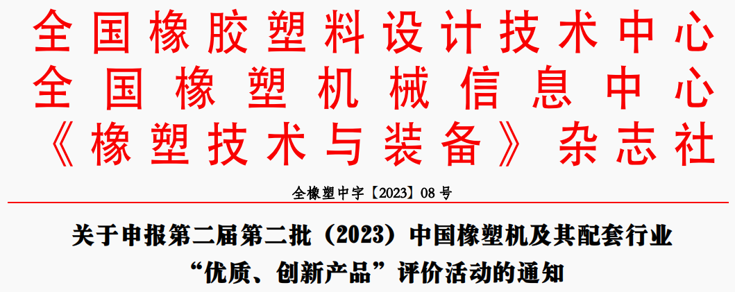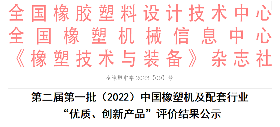 - 第二屆第二批(2023)中國橡塑機及配套行業(yè) “優(yōu)質(zhì)、創(chuàng )新產(chǎn)品”評價(jià)結果公示