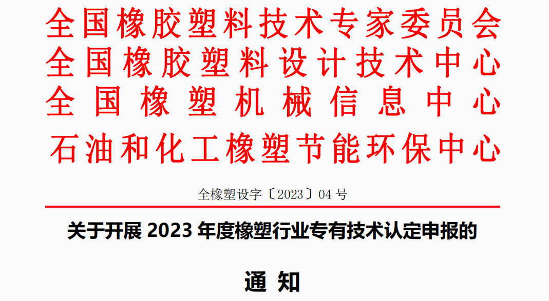 通知|關(guān)于申報第二屆第二批 (2023) 中國橡塑機及其配套行業(yè) “優(yōu)質(zhì)、創(chuàng )新產(chǎn)品”評價(jià)活動(dòng)的通知各相關(guān)單位: 按照工業(yè)和信息化部印發(fā)的《關(guān)于完善工業(yè)和信息化領(lǐng)域科技成果評價(jià)機制的實(shí)施方 案 (試行) 》 ( 工信廳科函〔2022〕329 號) 要求,在中國石油和化學(xué)工業(yè)聯(lián)合會(huì )、 中國石 油和化工勘察設計協(xié)會(huì )、中國化工情報信息協(xié)會(huì )“打造行業(yè)品牌戰略”的相關(guān)精神指導下, 結合橡塑機行業(yè)發(fā)展現狀及其制造企業(yè)需求,全國橡膠塑料設計技術(shù)中心、全國橡塑機械 信息中心、《橡塑技術(shù)與裝備》雜志社作為橡塑機械行業(yè)集信息、技術(shù)及傳媒為一體的評 價(jià)服務(wù)平臺,現將開(kāi)展第二屆第二批橡機行業(yè)專(zhuān)業(yè)設備及配套產(chǎn)品的 “優(yōu)質(zhì)、創(chuàng )新產(chǎn)品”評價(jià)活動(dòng),以彰顯企業(yè)在行業(yè)和項目建設中的影響力。并由評價(jià)平臺向全行業(yè)及國內外市場(chǎng)進(jìn)行品牌推薦,為國家品牌戰略提供專(zhuān)業(yè)評價(jià)依據。 一、評價(jià)目的及意義 為鼓勵我國橡塑機械企業(yè)及相關(guān)供應商提高整體產(chǎn)品質(zhì)量,擴大企業(yè)和產(chǎn)品的社會(huì )影 響力,促進(jìn)行業(yè)技術(shù)水平提高,支持一批優(yōu)秀企業(yè)做大做強,樹(shù)立行業(yè)整體形象,同時(shí)為 我國橡塑機械行業(yè)產(chǎn)品走出國門(mén)培育一批優(yōu)質(zhì)、創(chuàng )新產(chǎn)品,特開(kāi)展本評價(jià)活動(dòng)。本活動(dòng)也 為參與 “一帶一路”建設、國際項目競爭創(chuàng )造條件,打造橡塑機械 “產(chǎn)品品牌、企業(yè)品牌、 行業(yè)品牌” ,為國內外用戶(hù)、公共采購、參與大型重點(diǎn)工程項目招投標、進(jìn)入國產(chǎn)優(yōu)秀企業(yè)及產(chǎn)品采購目錄提供幫助和參考。 通過(guò)樹(shù)立典型個(gè)性化和多功能化的橡塑機械行業(yè)的優(yōu)質(zhì)和創(chuàng )新產(chǎn)品,激發(fā)全行業(yè)創(chuàng )優(yōu) 爭先的積極性,全面提升橡塑機械行業(yè)及其配套產(chǎn)品企業(yè)的產(chǎn)品水平;推動(dòng)中國橡塑機械 行業(yè)技術(shù)、產(chǎn)品、制造工藝創(chuàng )新發(fā)展,也對國家品牌戰略打造具有深遠的意義。 二、評價(jià)原則 (一) 堅持獨立、公開(kāi)、公平、科學(xué)原則 在全行業(yè)范圍內公開(kāi)評價(jià),在注重客觀(guān)事實(shí)的基礎上進(jìn)行定性評定。評價(jià)過(guò)程采取公 開(kāi)的專(zhuān)業(yè)評價(jià)、市場(chǎng)評價(jià)與用戶(hù)評價(jià)相結合,產(chǎn)品評價(jià)、 品牌評價(jià)與服務(wù)評價(jià)相結合的原則,采取專(zhuān)家評價(jià)的方式,確保評價(jià)結果的公正性和科學(xué)性。 (二) 優(yōu)中選精原則 從產(chǎn)品的多角度、全方位評價(jià),突出產(chǎn)品的適用性、先進(jìn)性、創(chuàng )新性,在智能制造、 節能環(huán)保、 自主知識產(chǎn)權、產(chǎn)品升級換代等方面充分對比,確保優(yōu)中出精品,評價(jià)出具有影響力和先進(jìn)性的優(yōu)質(zhì)和創(chuàng )新產(chǎn)品。 (三) 自愿申報原則 本活動(dòng)為非強制性,由各企業(yè)自愿申報。 (四) 三結合原則 本活動(dòng)采取企業(yè)申報、行業(yè)推薦、專(zhuān)家推薦相結合的原則。 三、 申報產(chǎn)品要求及評價(jià)分類(lèi) ( 一) 申報產(chǎn)品為中國橡膠塑料機械及配套件領(lǐng)域,所申報的產(chǎn)品應滿(mǎn)足以下條件之一: 1、高效能產(chǎn)品、自主研發(fā)產(chǎn)品,節能、環(huán)保、安全等性能領(lǐng)先產(chǎn)品等; 2、代表行業(yè)技術(shù)發(fā)展方向,有創(chuàng )新性,具有國內領(lǐng)先或國際先進(jìn)水平的產(chǎn)品; 3、在國內外市場(chǎng)有較好的聲譽(yù),具有較高市場(chǎng)競爭力的產(chǎn)品; 4、銷(xiāo)量大、適用性強,且用戶(hù)反響好的產(chǎn)品。 (二) 申報評價(jià)產(chǎn)品起止年限及說(shuō)明 本批次的 “優(yōu)質(zhì)、創(chuàng )新產(chǎn)品”評價(jià)活動(dòng)主要針對 2019 年~2021 年已過(guò)有效期的優(yōu)質(zhì)創(chuàng )新產(chǎn)品,以及其他未申報過(guò)但符合評價(jià)產(chǎn)品范圍的產(chǎn)品。 本評價(jià)活動(dòng)每年申報一次,有效期 3 年。 當所評價(jià)的產(chǎn)品超過(guò)評價(jià)期時(shí),需進(jìn)行新一輪的復評或新評。對評價(jià)產(chǎn)品在 3 年有效期內 ,如出現重大質(zhì)量事故,且無(wú)有效改進(jìn)的, 將取消其此項榮譽(yù)。 (三) 評價(jià)產(chǎn)品范圍 評價(jià)產(chǎn)品包括優(yōu)質(zhì)產(chǎn)品和創(chuàng )新產(chǎn)品兩個(gè)類(lèi)別,評價(jià)產(chǎn)品范圍包括:煉膠設備、硫化設備、擠出設備、壓延設備、成型設備、裁斷設備、物流和輸送設備、橡塑節能環(huán)保技術(shù)與裝備、成品檢測設備、橡塑機主要配套產(chǎn)品及專(zhuān)用配套件,以及其他橡塑行業(yè)新產(chǎn)品和新設備等。 四、申報條件 (一) 申報企業(yè)必須具備經(jīng)營(yíng)主體資格,取得工商法人營(yíng)業(yè)執照。 (二) 申報企業(yè)須取得相應的生產(chǎn) (制造) 許可證,如生產(chǎn)許可證、安全認證、強制認